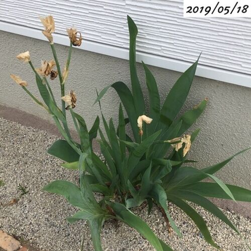 ジャーマンアイリスの葉の拡がりが凄いです。花の時期が終わった頃は この程度だったのに、今は ここまで拡がりました。全くお世話をしてないのに、いつの間に こんなに増えたんだ。 このフォルム、燃え盛る炎のよう。 色が赤だったら、これは完全に炎でしょ…