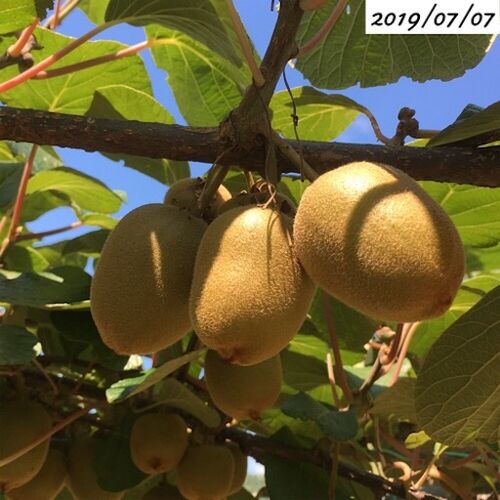 梅雨の合間の晴れの日畑に行って、久しぶりにキウイフルーツの状態を見てきました。メスの木棚の下から覗くと・・・順調に膨らんでいました。実の数は去年より減っていますが、これぐらいがちょうど良いと思います。去年は実の数が多過ぎて、恐らくそれが原…